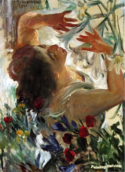 Woman with Lilies in a Greenhouse, Art Painting by Lovis Corinth