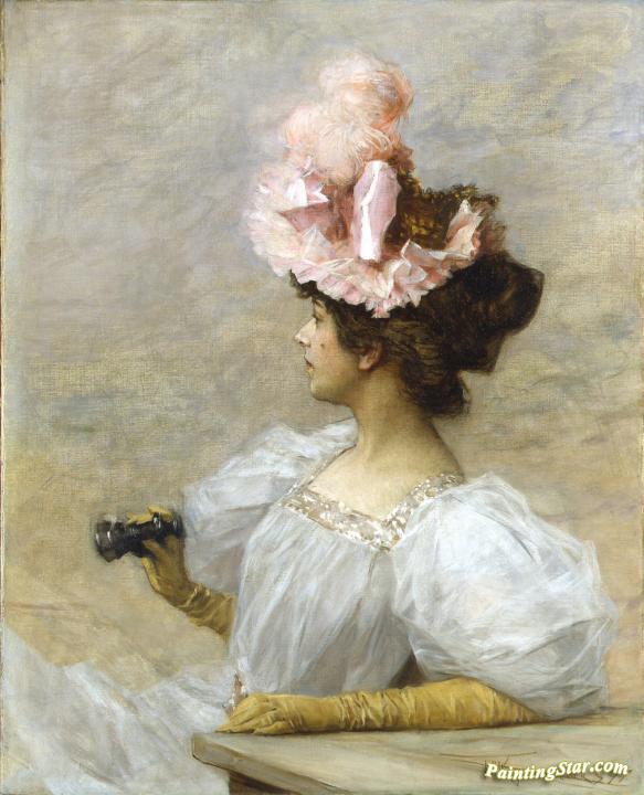 Woman with Opera Glasses, Art Painting by Frederik Henrdik Kaemmerer