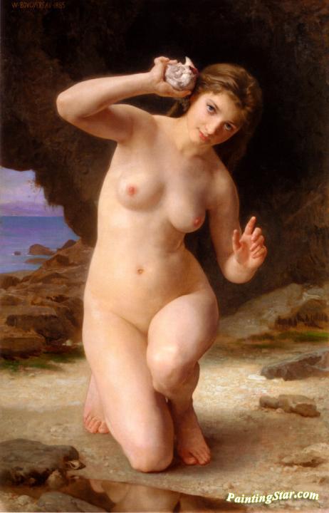 Woman with Seashell, Art Painting by William Adolphe Bouguereau
