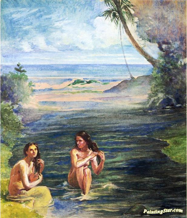 Women Bathing in Papara Riiver, Art Painting by John La Farge