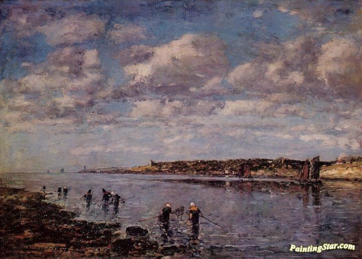 Women Fishing for Shrimp at Kerhor, Art Painting by Eugène-Louis Boudin
