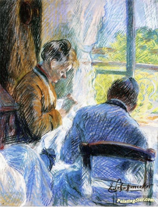 Women Sewing at the Window, Art Painting by Claude-Emil Schuffenecker