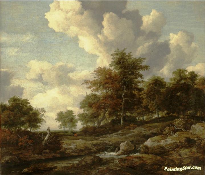 Wooded landscape with a rocky stream, Art Painting by Jacob van Ruisdael