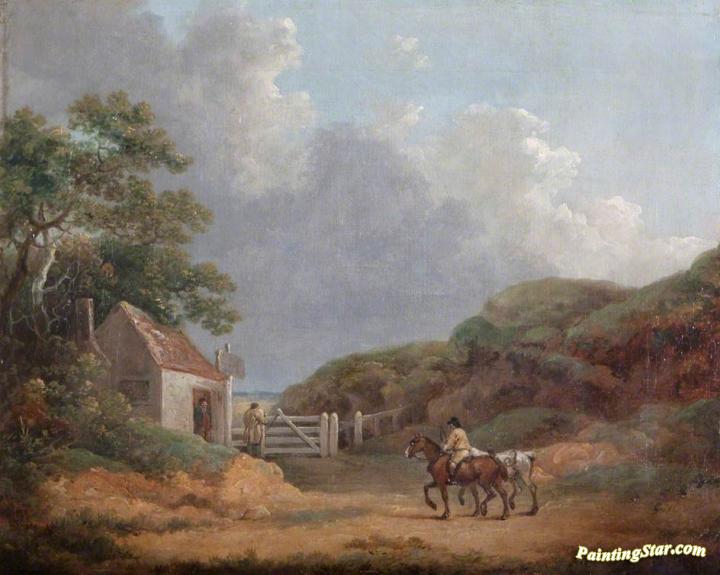 Wooded Landscape with a Toll Gate, Art Painting by George Morland