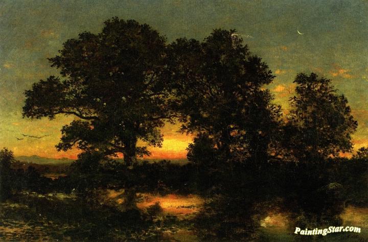Wooded Landscape with Sunset, Art Painting by Christopher Pearse Cranch