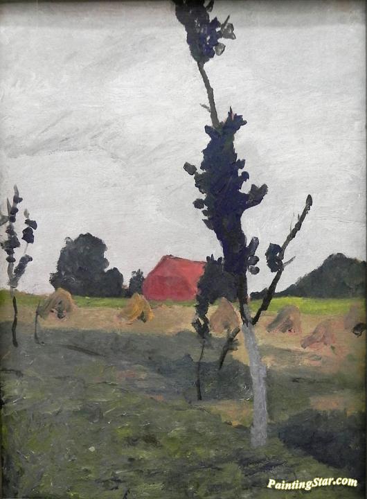 Worpsweder Landscape with Red House, Art Painting by Paula Modersohn-Becker