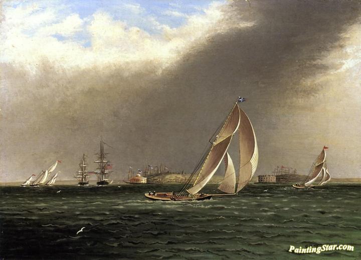 Yacht Racing off Castle Garden, New York, Art Painting by James E. Buttersworth