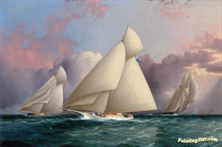 Yacht 'Sappho' Beating to the Wind, Art Painting by James E. Buttersworth