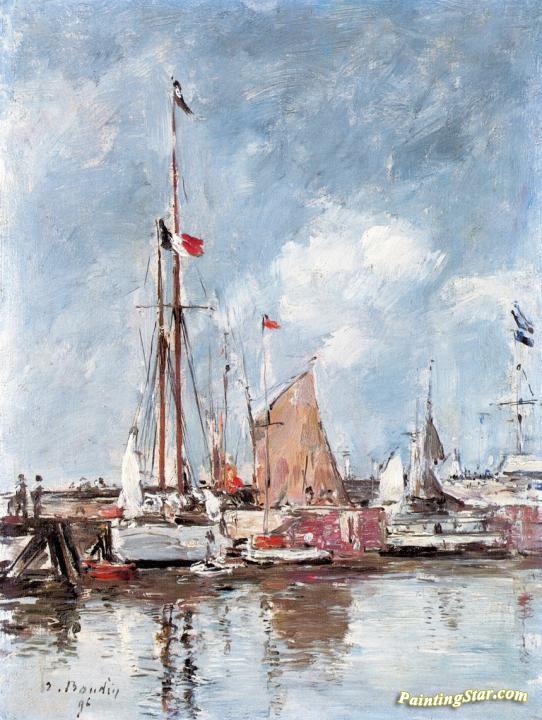 Yachts in the Deauville Harbor, Art Painting by Eugène-Louis Boudin