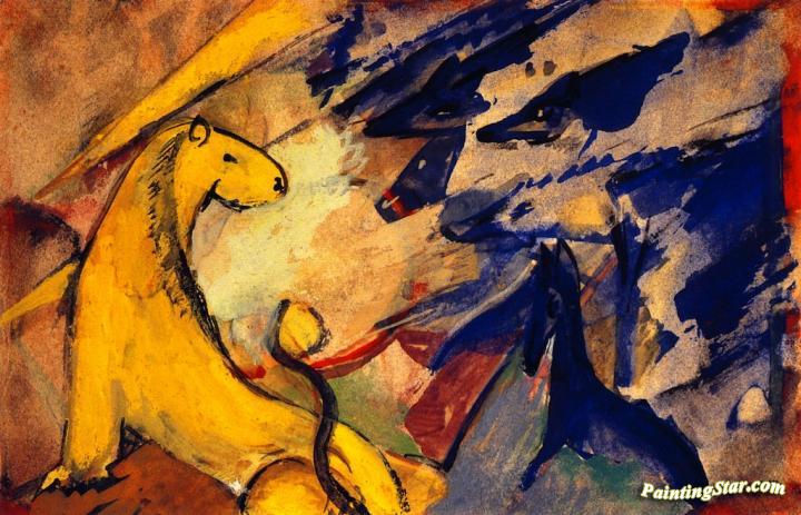 Yellow Lion, Blue Foxes, Blue Horse, Art Painting by Franz Marc