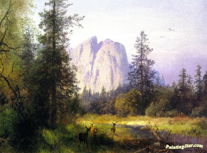 Yosemite Valley - A Family of Deer, Art Painting by Herman Herzog