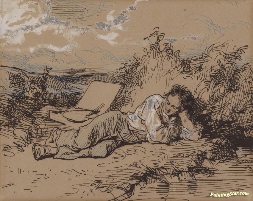 Young Artist Asleep By A Stream,1859, Art Painting by Paul Gavarni
