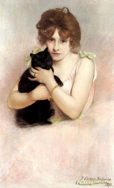 Young Ballerina Holding A Black Cat, Art Painting by Pierre Carrier-Belleuse