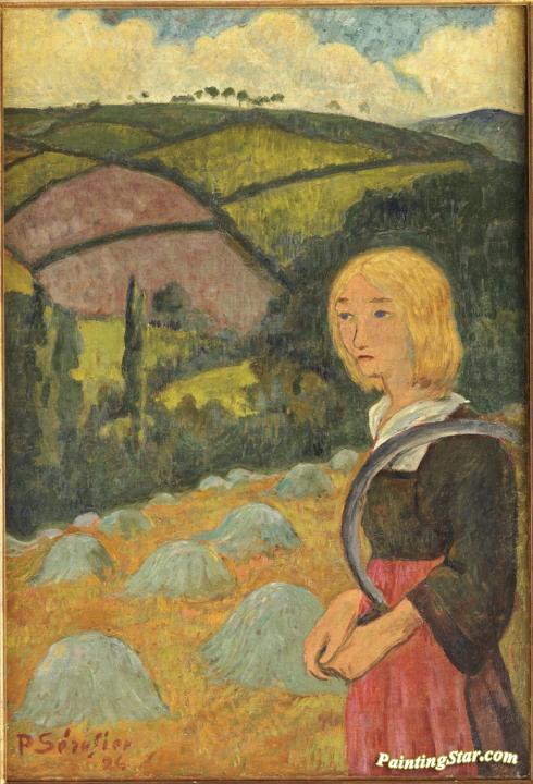 Young Breton Girl and Haystacks, Art Painting by Paul Serusier