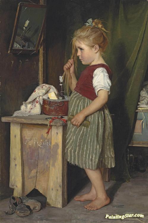 Young Girl Combing Her Hair, Art Painting by Agathe Rostel