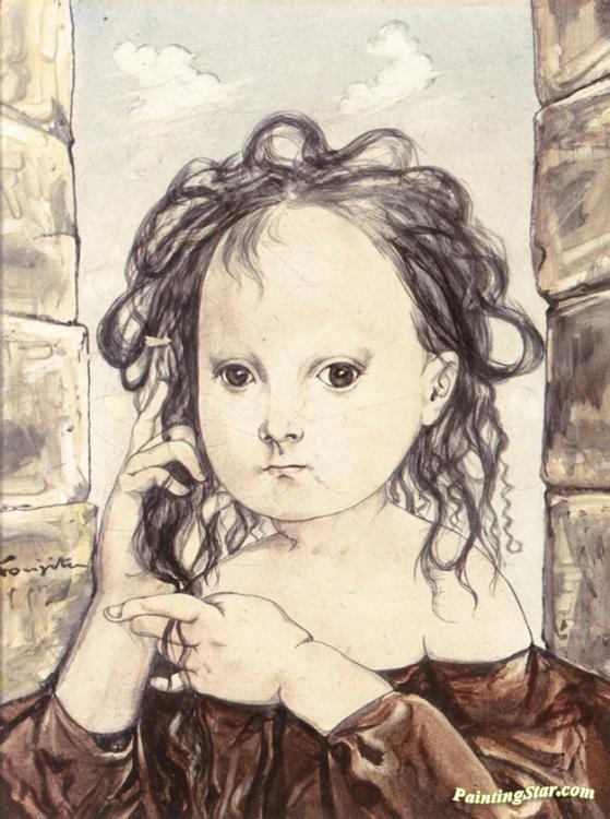 Young Girl in a Brown Skirt, Art Painting by Tsuguharu Foujita