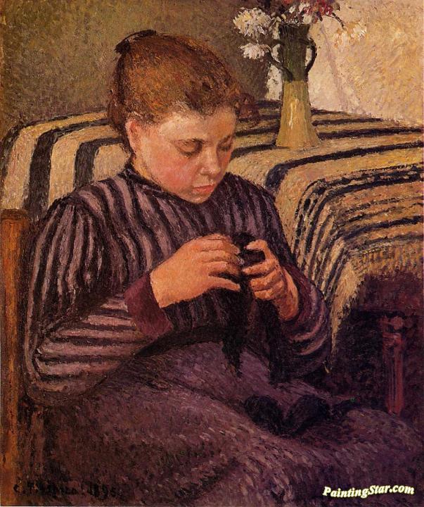 Young Girl Mending Her Stockings, Art Painting by Camille Pissarro