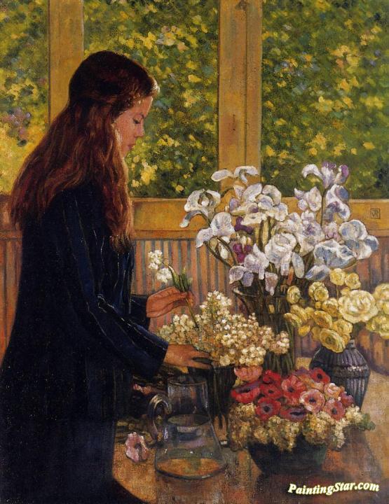 Young Girl with a Vase of Flowers, Art Painting by Theo van Rysselberghe