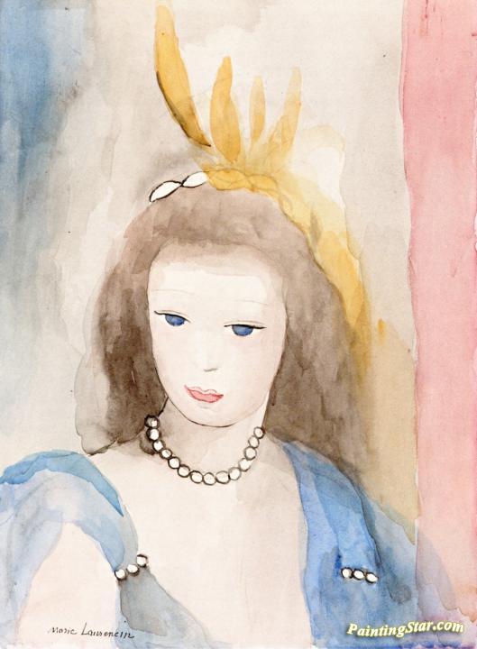 Young Girl With Pearls, In Blue, Art Painting by Marie Laurencin