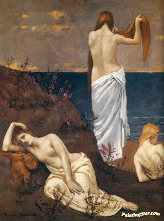 Young Girls by the Sea, Art Painting by Pierre Puvis de Chavannes