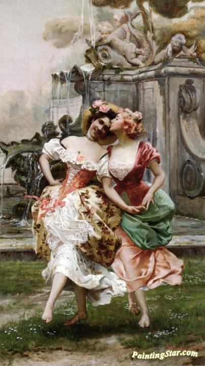 Young Girls Dancing By A Fountain, Art Painting by Gioacchino Pagliei