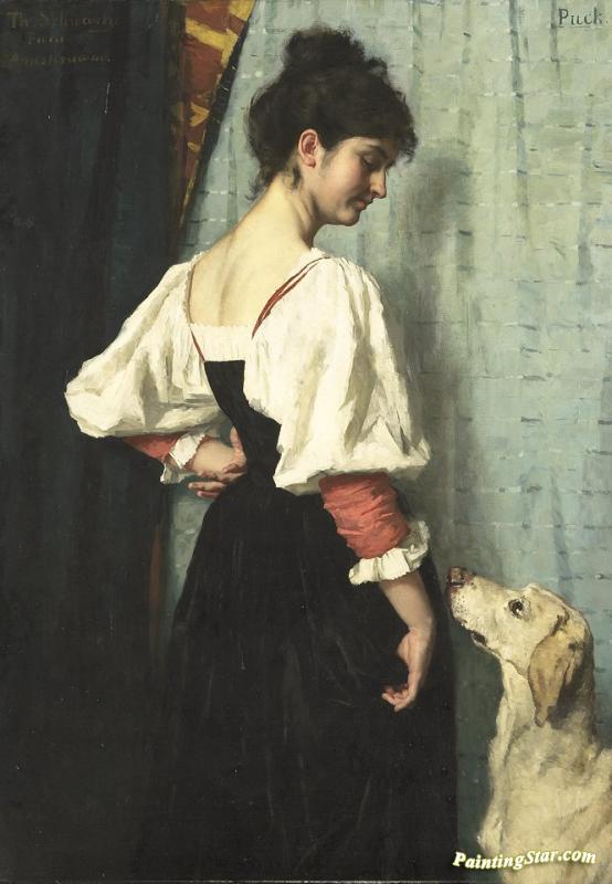 Young Italian Woman With A Dog Called Puck, Art Painting by Therese Schwartze