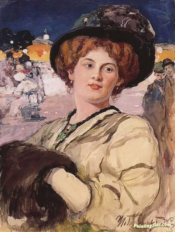 Young Lady At The Night Cafe, Art Painting by Ivan Goryushkin-Sorokopudov