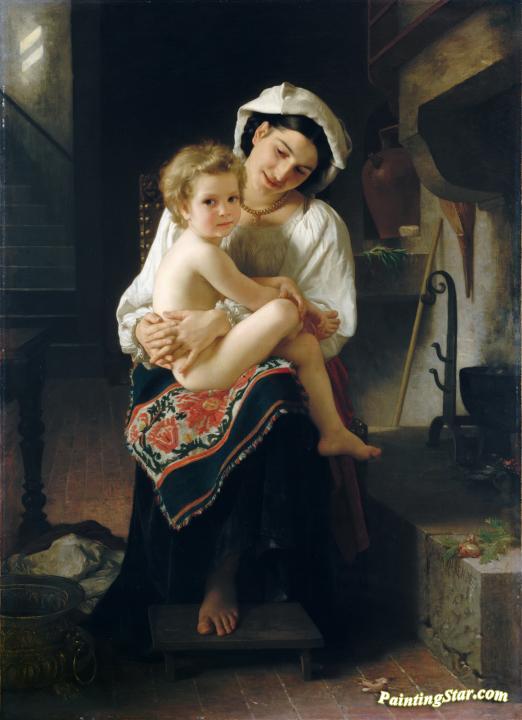 Young Mother Gazing at Her Child, Art Painting by William Adolphe Bouguereau