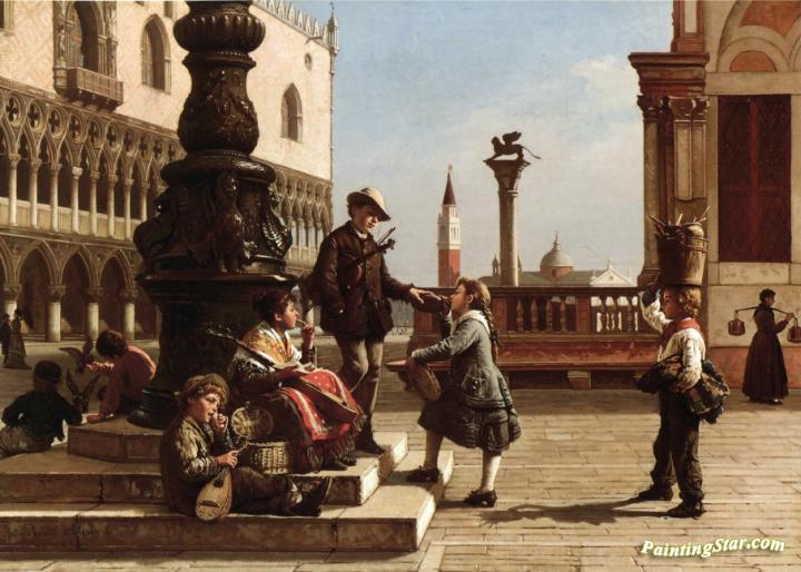 Young Musicians in Piazza San Marco, Venice, Art Painting by Antonio Paoletti