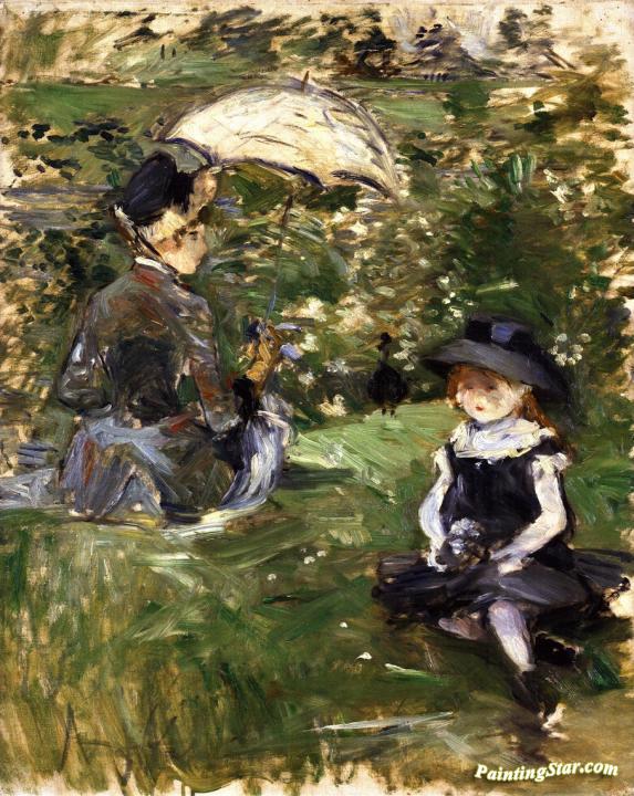 Young Woman and Child on an Isle, Art Painting by Berthe Morisot