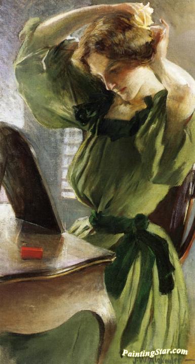 Young Woman Arranging Her Hair, Art Painting by John White Alexander