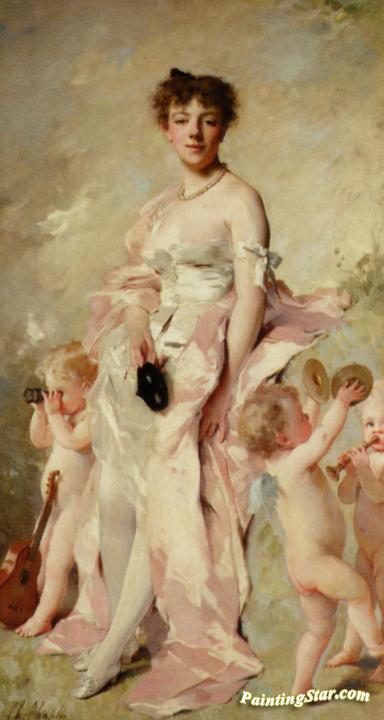 Young Woman in a Ball Gown with Putti, Art Painting by Charles Chaplin