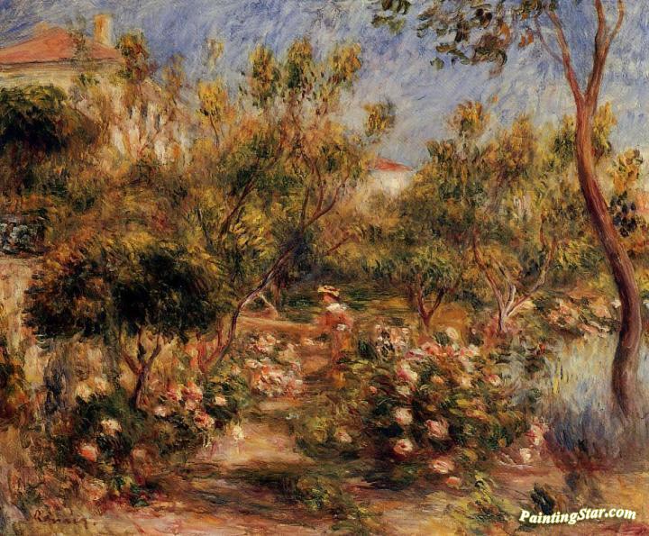 Young Woman in a Garden - Cagnes, Art Painting by Pierre Auguste Renoir