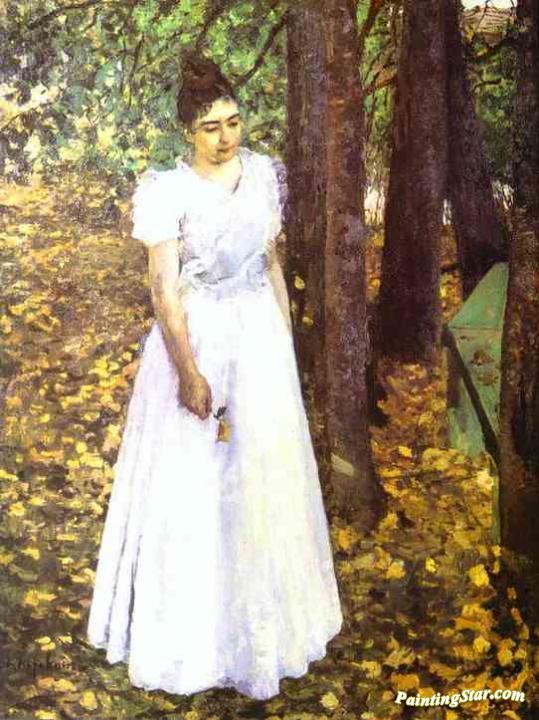 Young Woman in a Garden., Art Painting by Constantin Alexeevich Korovin