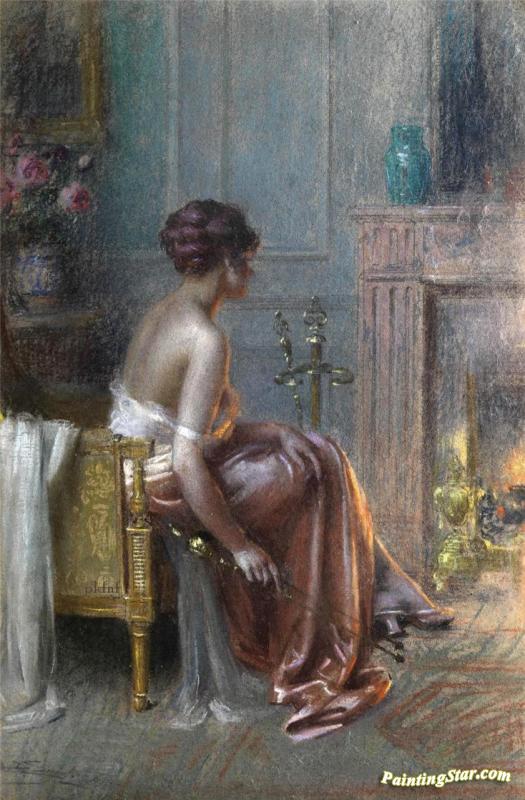 Young Woman In Front Of The Fireplace, Art Painting by Delphin Enjolras