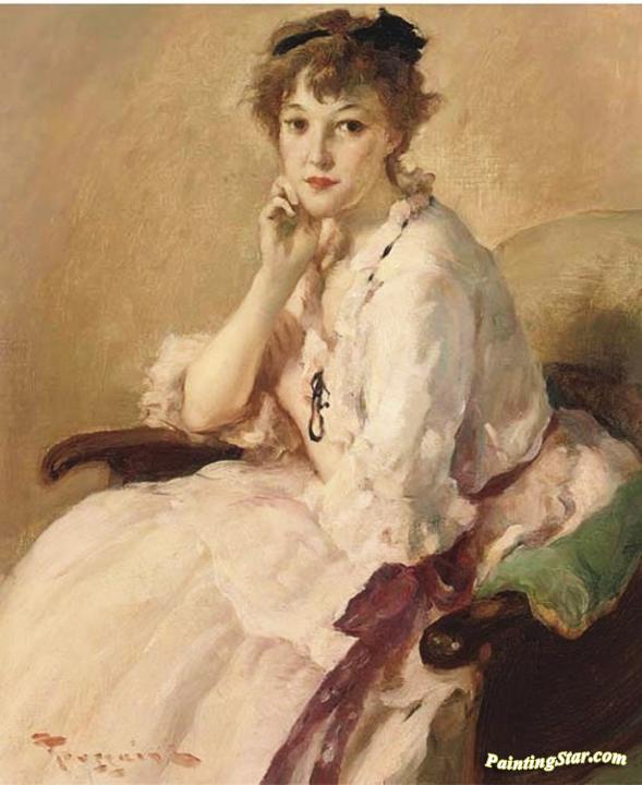 Young Woman in Pink Dress, Art Painting by Fernand Toussaint