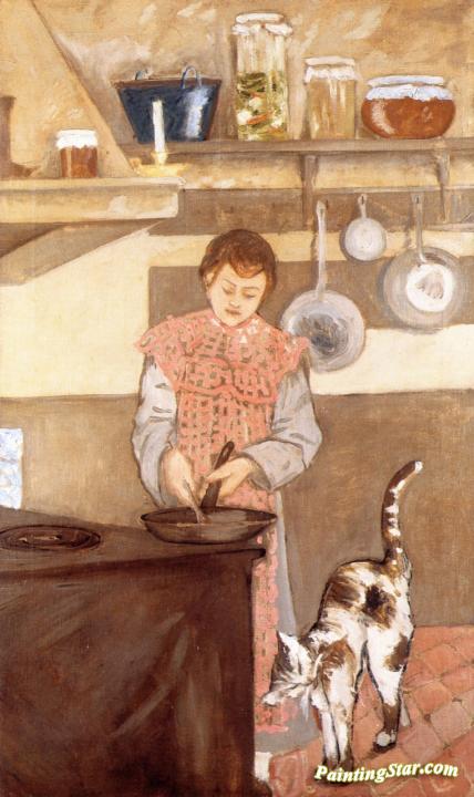 Young Woman in the Kitchen with a Cat, Art Painting by József Rippl-Rónai