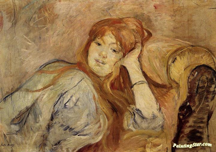 Young Woman Leaning on Her Elbow, Art Painting by Berthe Morisot
