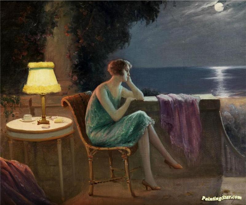 Young Woman On The Terrace, Art Painting by Delphin Enjolras