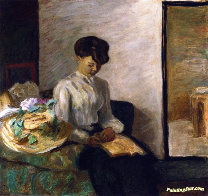 Young Woman Reading, Flowered Hat, Art Painting by Pierre Bonnard