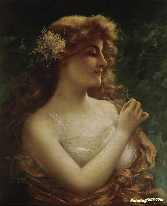 Young Woman With A Dragonfly, Art Painting by Emile Vernon
