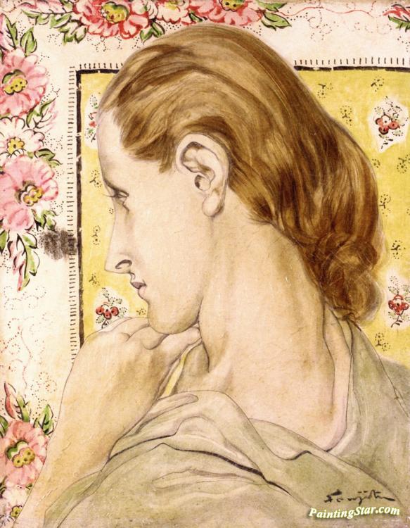 Young Woman with a Tapestry, Art Painting by Tsuguharu Foujita