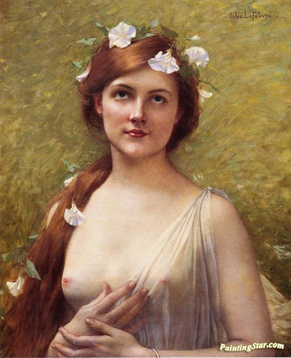 Young Woman With Morning Glories In Her Hair, Art Painting by Jules Joseph Lefebvre