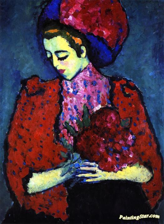 Young Woman with Peonies, Art Painting by Alexej Jawlensky