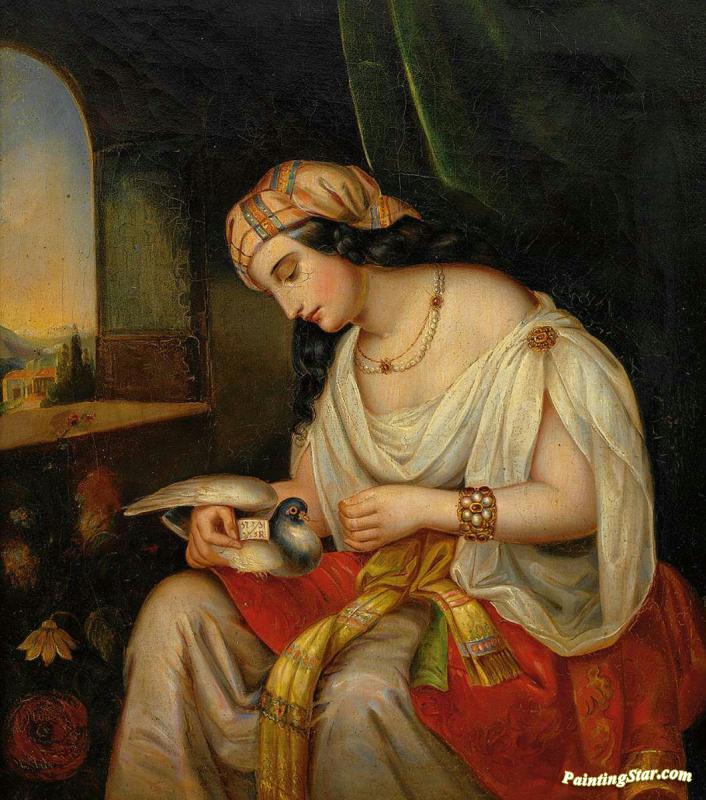Young Woman With Pigeon, Art Painting by Friedrich von Amerling