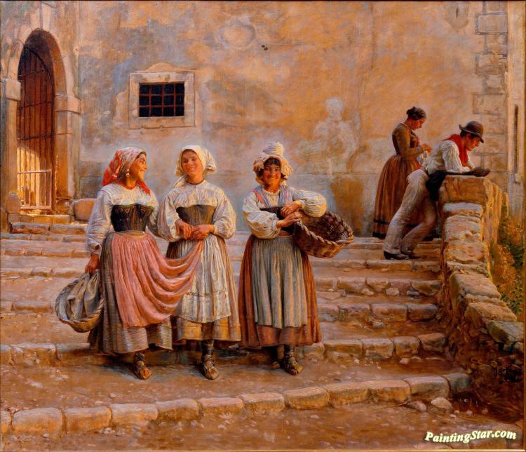 Young women transporting lime. Civiita d' Antino, Art Painting by Kristian Zahrtmann