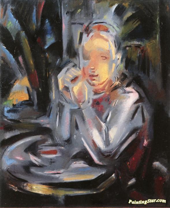 Youth Seated at a Table Facing a Cup, Art Painting by Maria Blanchard