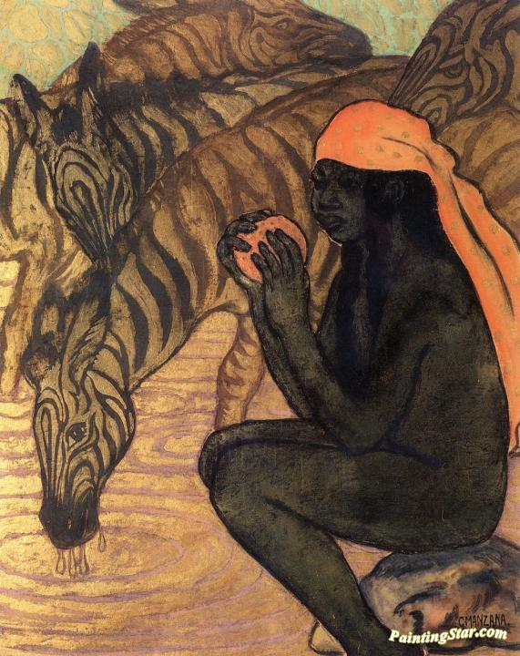 Zebras at the Watering Hole, Art Painting by Georges Manzana Pissarro