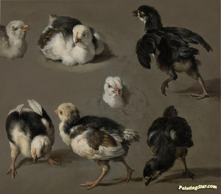 Zeven kuikens, Art Painting by Melchior de Hondecoetter