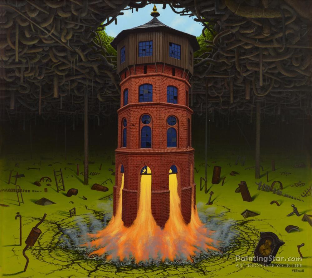 Underwater-tower, 1996, Art Painting by Jacek Yerka